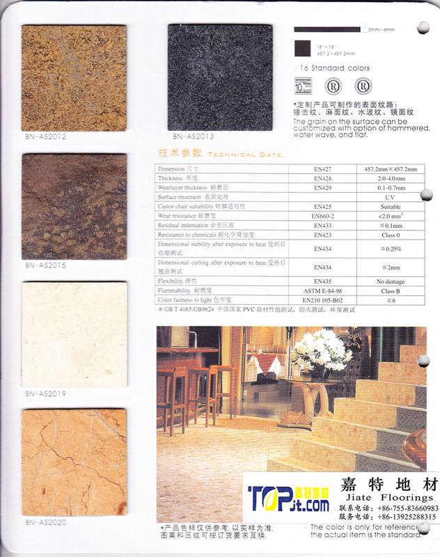 記者在市場上看到,當下的PVC地板花色品種比較豐富,但多數是走高仿真路線,包括仿地毯紋、石材紋、木地板紋等,紋路逼真美觀,色彩豐富絢麗。而目前最受歡迎的是仿木地板和仿大理石地板,仿木材肌理的擁有木地板細致的紋理和天然清新的感覺,工藝更為精致的甚至具有仿古木地板古樸自然的意蘊;仿大理石紋理的則擁有天然石材自然豐富的紋理,在視覺效果和腳感上都與真正的木地板、大理石相差無幾。