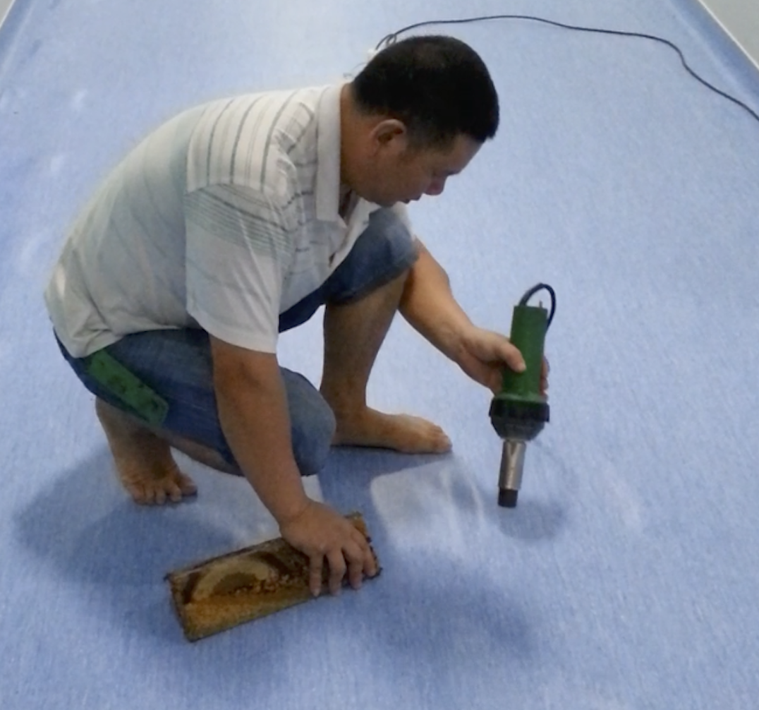 1. 因?yàn)榇娣挪划?dāng),造成膠地板變形,安裝時(shí)需要多費(fèi)功夫修復(fù)鼓起膠地板 ![]() 存放不當(dāng)造成PVC地板變形 2. 需要先用焊槍烤軟地板 ![]() 用焊槍烤軟PVC地板